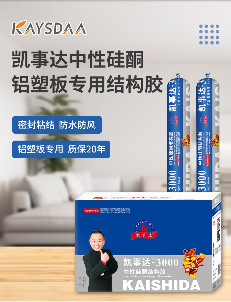 凱事達3000中性硅酮結(jié)構(gòu)膠,適用于石材、鋁塑板、平板玻璃、展柜 雨棚、陽光房,超強防水耐候